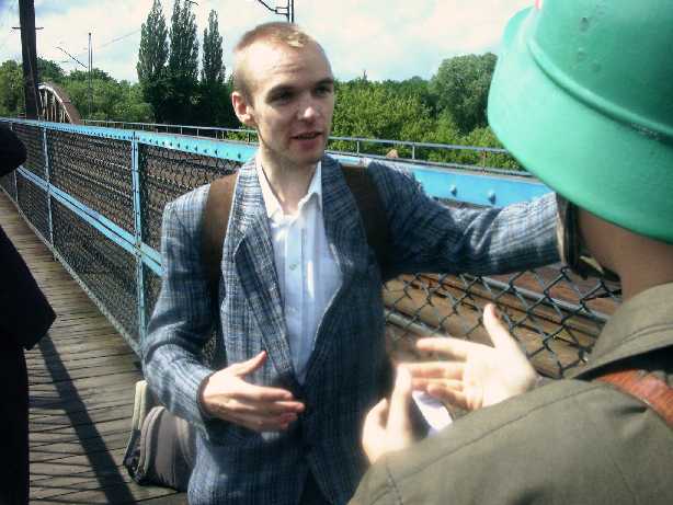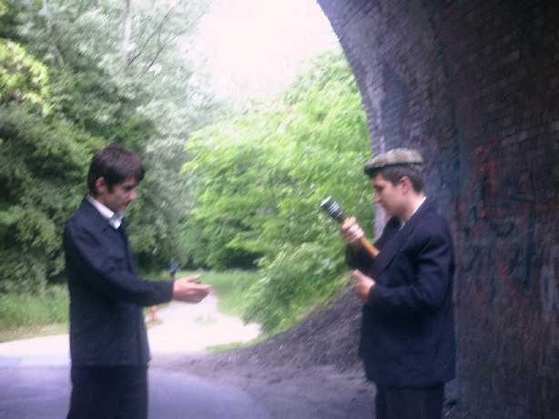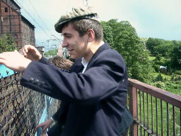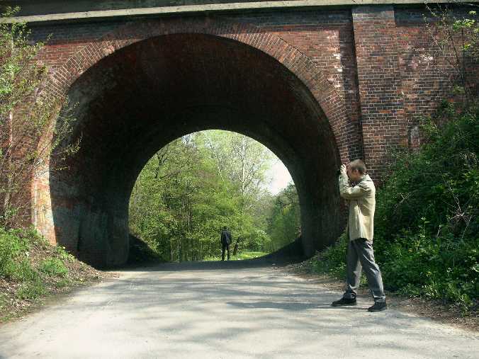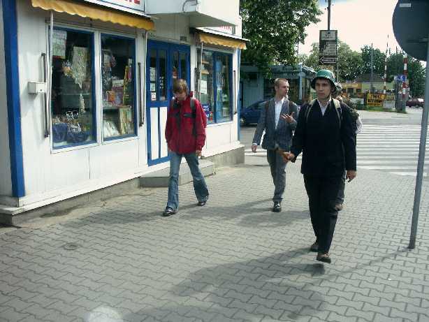 Niby rekonesans przed podłożeniem wybuchu. Grzechu specjalnie tak stanął aby zakryć znak szlaku rowerowego. Robi zdjęcie przedepokowym aparatem. | Zabójczy wzrok Marcina.