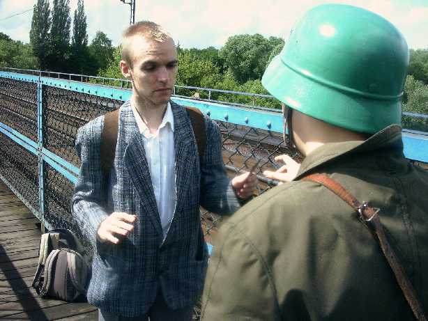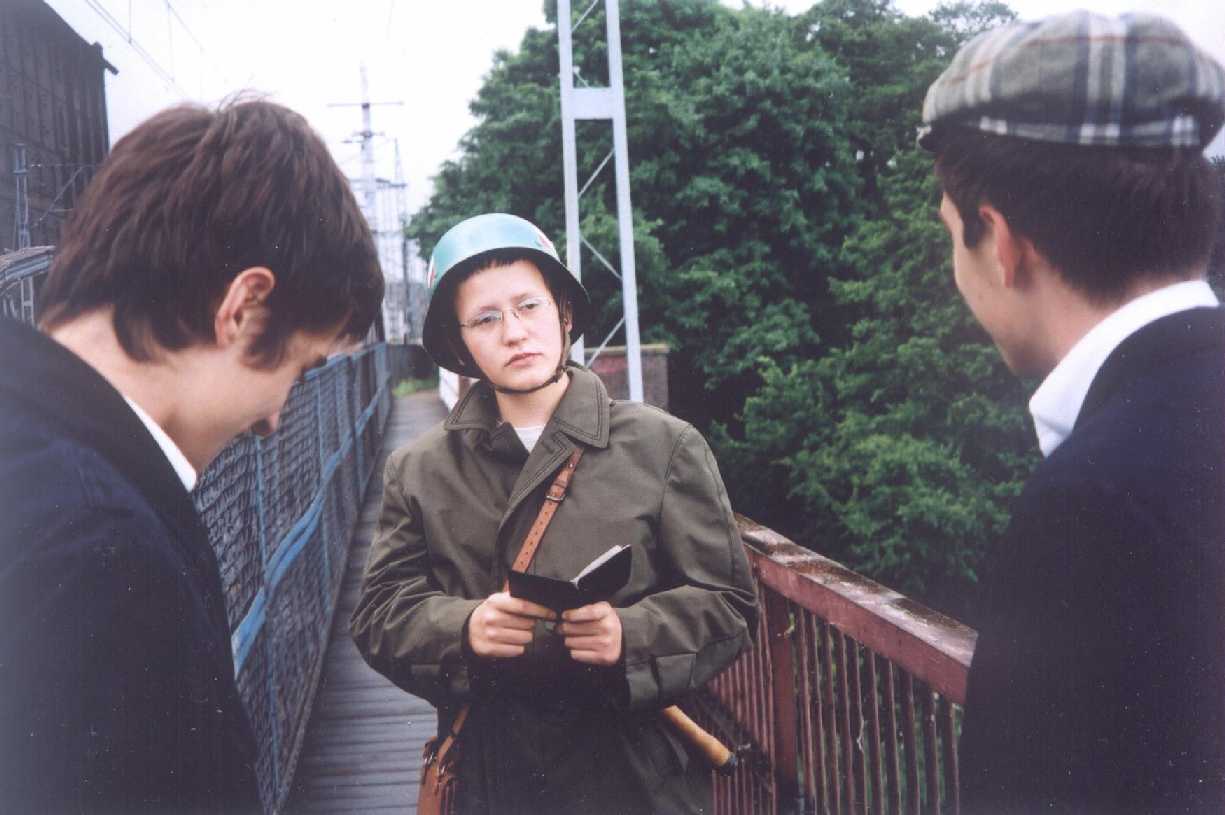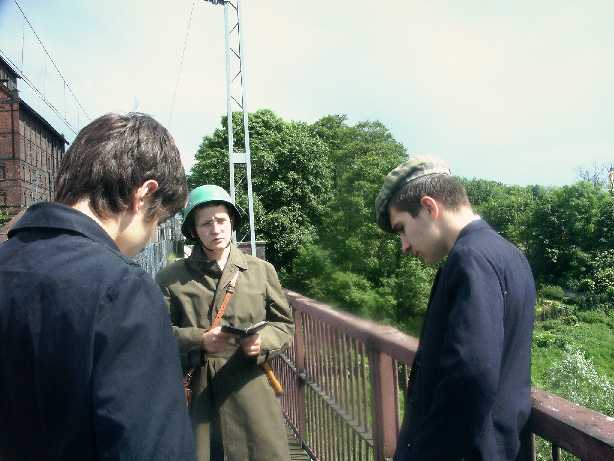 Chyba Bracia wracają nad świtem z jakiejś balangi. Było mokro, bo pogoda się szybko zmieniała - raz słońce świeciło, raz deszcz. Zdjęcia na moście były robione jednego dnia! | Nad sceną kontroli na posterunku męczyliśmy się najdłużej.